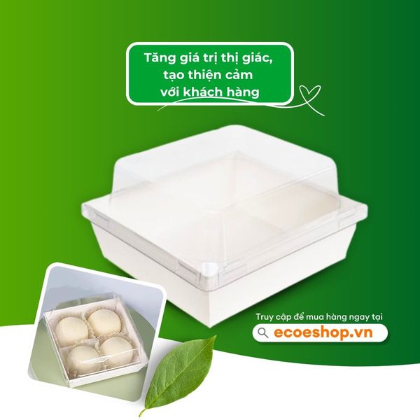 Bên cạnh hộp giấy đựng bánh kraft vuông thì hộp giấy trắng vuông cũng được nhiều khách hàng ưa thích và lựa chọn. Với chất liệu giấy trắng mang lại cảm giác sạch sẽ, cao cấp, hiện đại cùng thiết kế tinh tế, nắp trong suốt và kín có thể thu hút khách hàng ngay từ ánh nhìn đầu tiên. Không chỉ nổi bật bởi thiết kế tinh tế, chất liệu sang trọng mà hộp còn có dung tích phù hợp cho suất ăn của 1 đến 2 người. Ngoài đựng bánh bông lan trứng cuộn bạn có thể đựng bánh kem, bánh cheese và các loại bánh ngọt khác nhau.