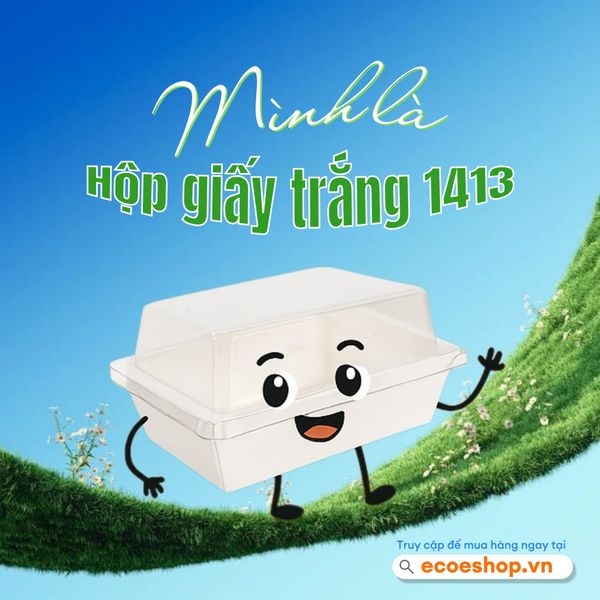 - Hộp giấy trắng vuông E1413 + nắp PET 1413