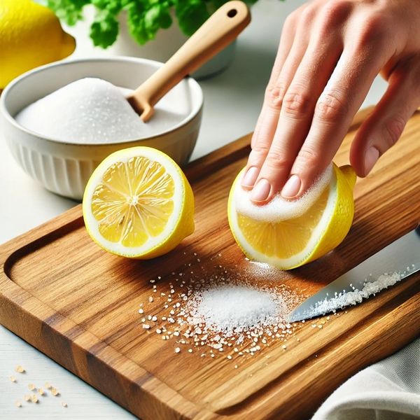 Một trong các cách vệ sinh thớt gỗ khá hiệu quả là bạn dùng chanh và muối ăn. Hai thành phần này có khả năng kháng khuẩn và khử trùng nhằm ngăn chặn sự phát triển của vi khuẩn trên bề mặt thớt. Bạn có thể thực hiện theo các bước như sau: