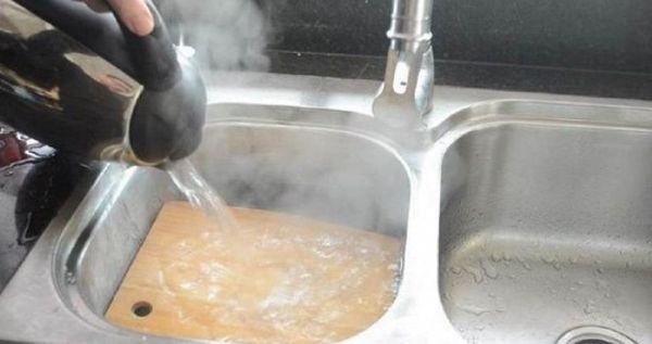 Cách đầu tiên cũng là đơn giản nhất đó chính là sử dụng nước nóng để vệ sinh thớt