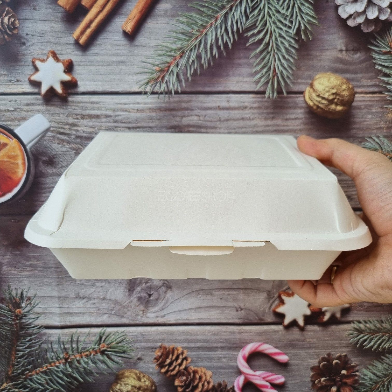 - Chống thấm nước, chống thấm dầu, không mềm rã khi đựng thức ăn; - An toàn với thực phẩm nóng, nước sôi 100Oc; - Mẫu mã quen thuộc, thao tác cực nhanh khi sử dựng; - Sản phẩm có lỗ thoát hơi 2 bên cạnh nắp, giúp thức ăn giữ được độ dòn và hương vị nguyên bản; - Thiết kế nút hóa thông minh, không cần dây ràng; - Kết cấu chắn chắn, giúp chồng nhiều hộp lên nhau không bị xẹp; - Tái chế được, thân thiện với môi trường.